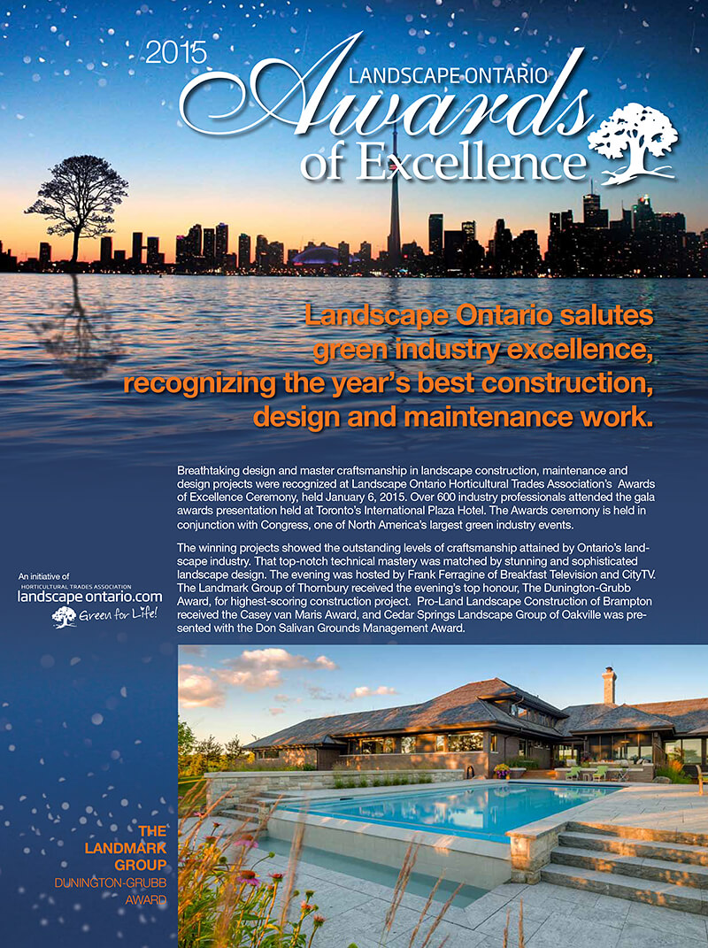 The inspiring talent and creativity of this year’s winners were acknowledged at Landscape Ontario Horticultural Trades Association’s Awards of Excellence Ceremony, January 6, 2015.