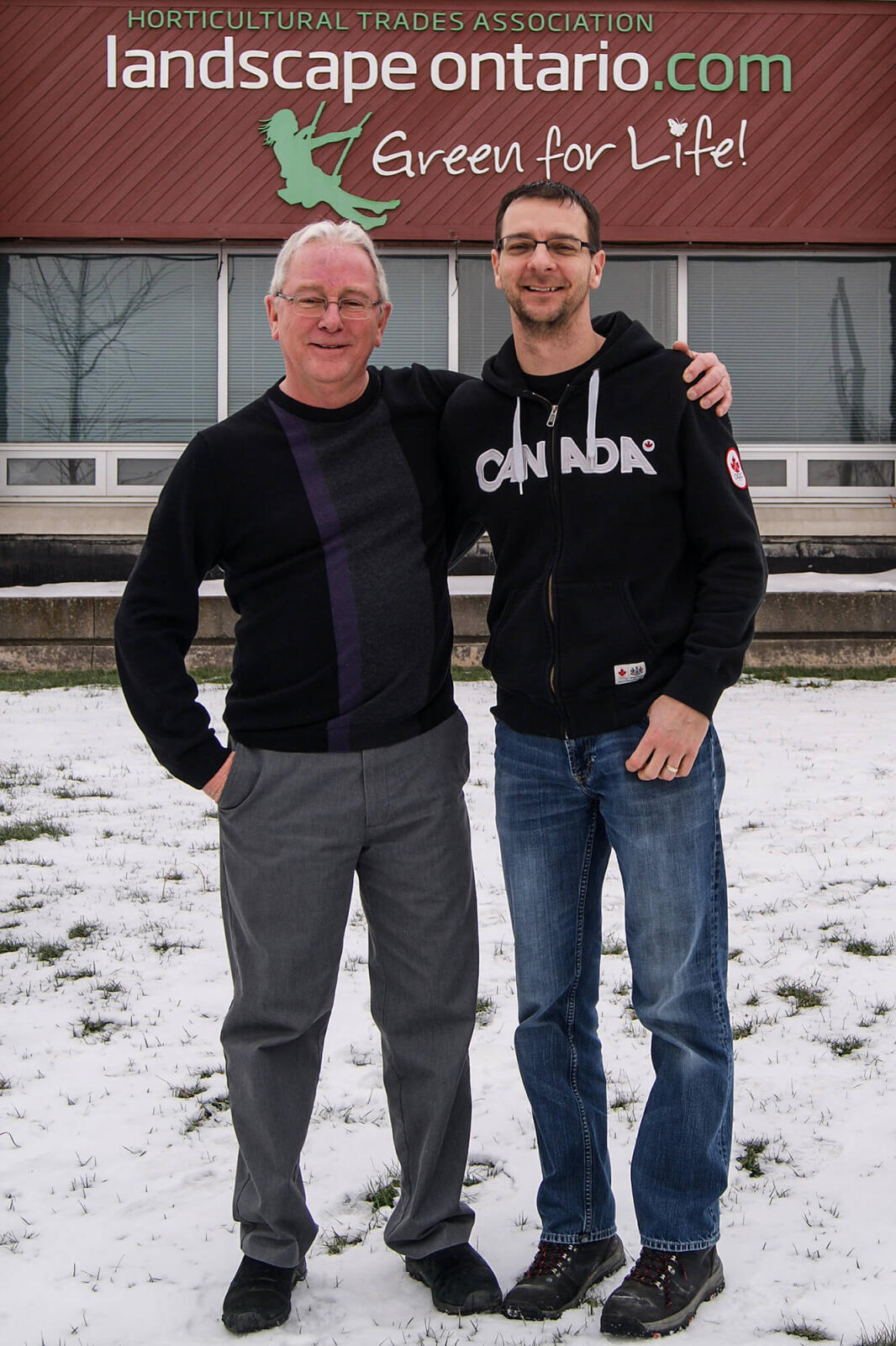 Staff member Allan Dennis (left) has retired after long service as Landscape Ontario magazine’s editor. In addition to good wishes and appreciation from all, Dennis received a special pen, engraved “Thanks to Allan, from LO.” Robert Ellidge, at right, takes over the magazine’s editorial leadership with this issue.