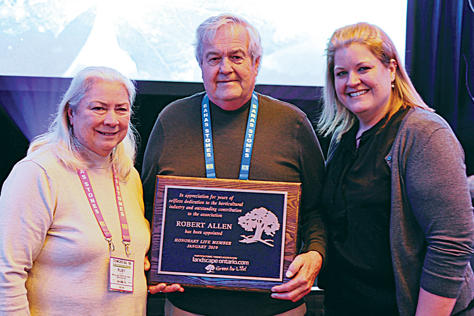 The highest honour that can be bestowed upon a Landscape Ontario member was presented to Bob Allen at this year’s Landscape Ontario Awards of Excellence ceremony on Jan. 8. Allen, along with Ottawa Chapter founder, Jim Bauer, was given an Honorary Lifetime Membership Award for his longstanding volunteer contribution to both the association and to furthering the advancement of the profession. Allen became a member of Landscape Ontario’s London Chapter back in 1975, a year after starting Bob Allen Horticultural Services. Allen held various positions within the chapter board, including treasurer and membership chair, and serving as chapter president in 1981 and 1991 and provincial board rep from 1982 to 1998.