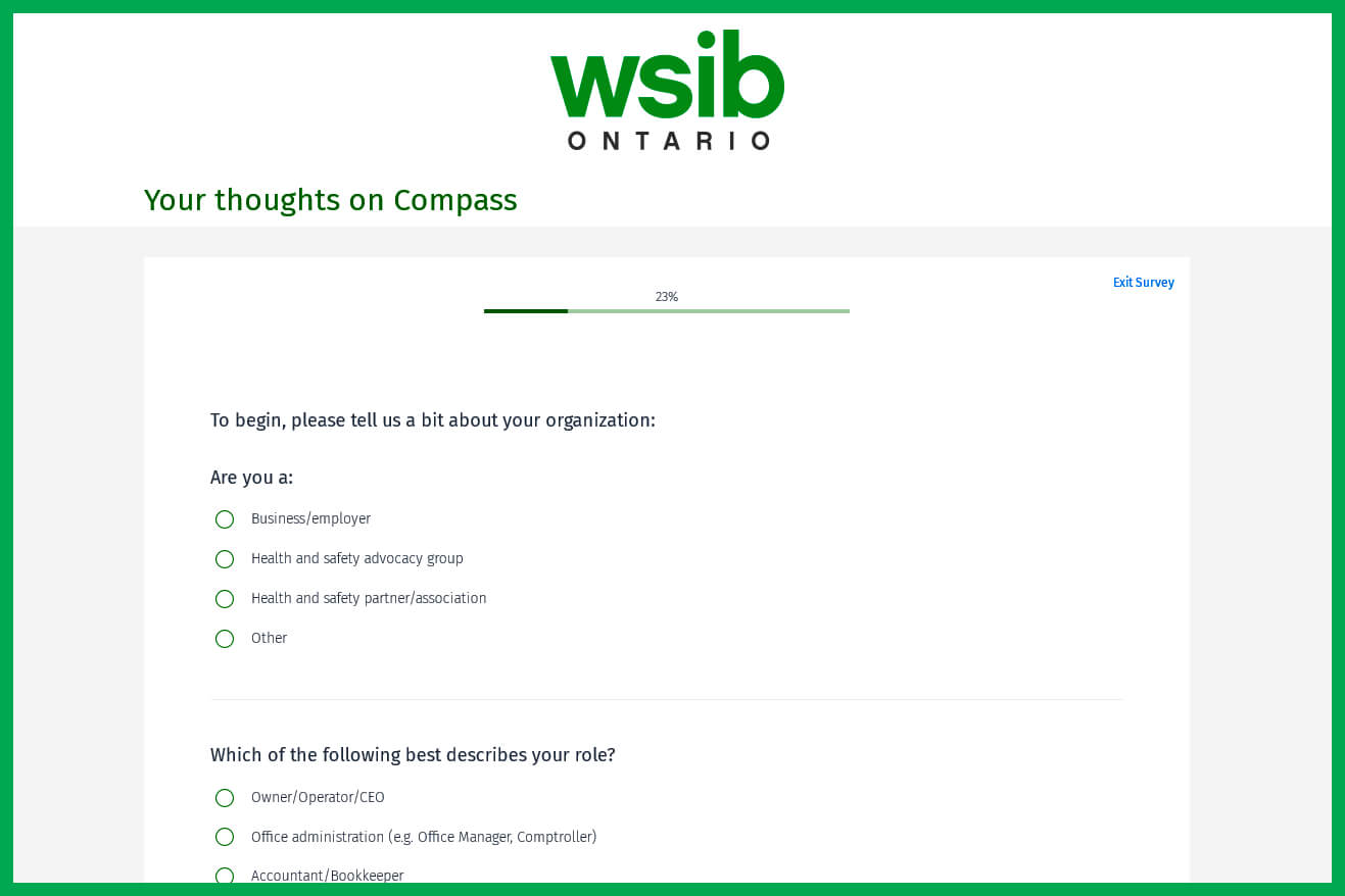 The next phase of Compass will be introduced in late 2019. This updated version will include a secure portal where employers can log in to view claims, injury rates and other details specific to their businesses. WSIB is seeking input on Compass from stakeholders using a survey. The survey will collect feedback on its proposed design and will help guide the final design of the tool.