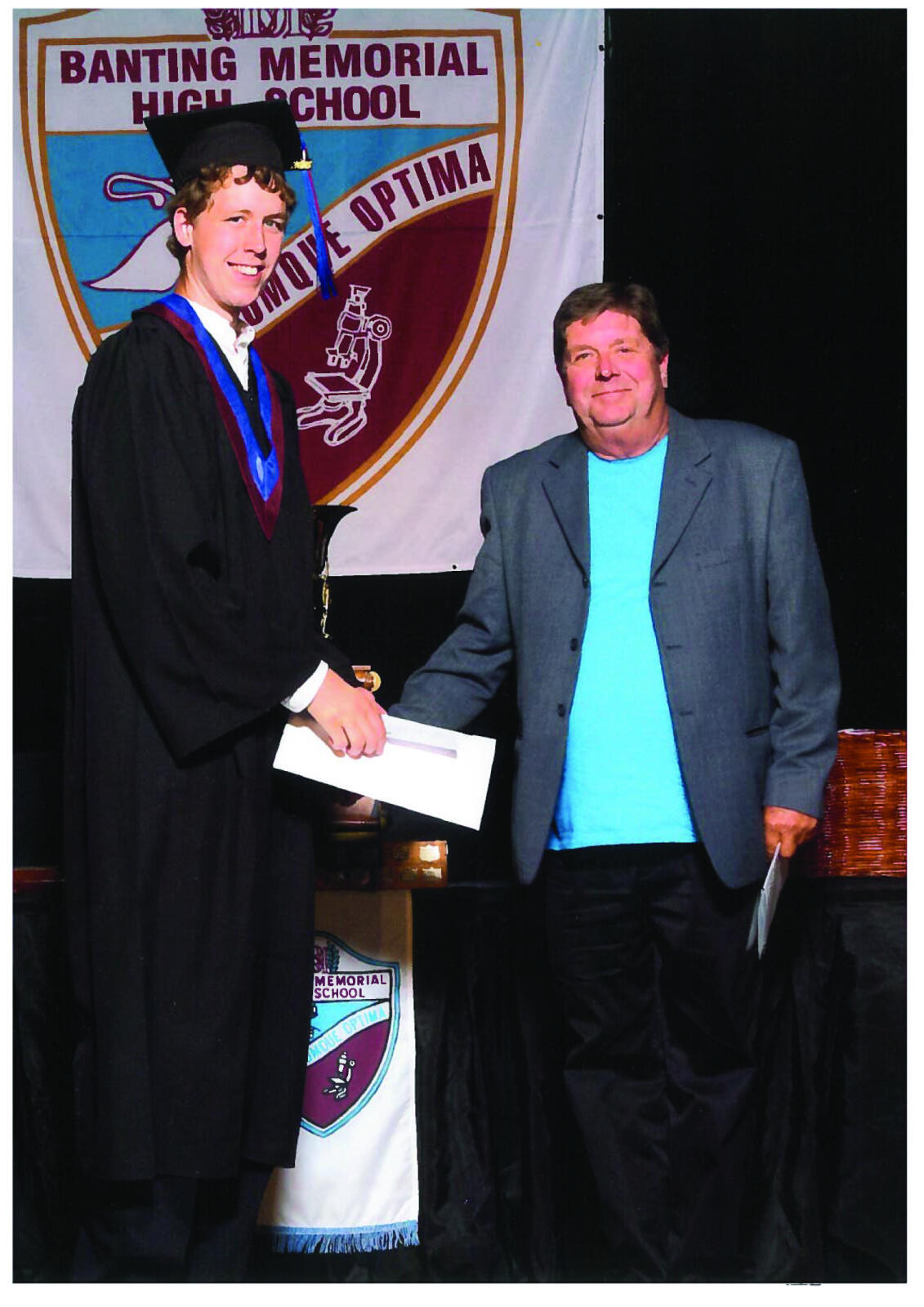 Landscape Ontario’s Georgian Lakelands Chapter recently presented Banting Memorial High School student Nathaniel Brinkman with the chapter’s bursary award. The $250 award goes to the grade 12 student with the highest marks in workplace landscaping construction and maintenance. Brinkman is pictured here at left with chapter representative, Terry Kowalski.
