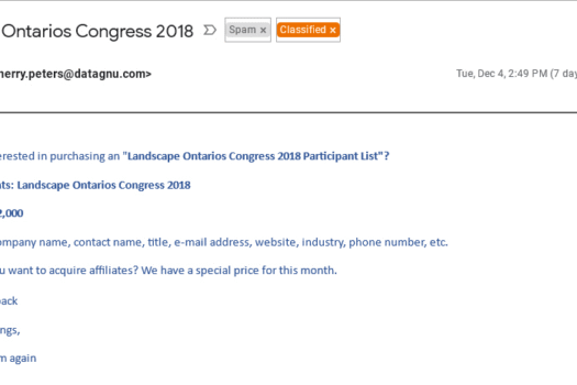 Email messages offering Congress lists are not from Landscape Ontario