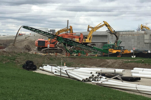 Highway expansion project provides crushed rock for use on LO site.