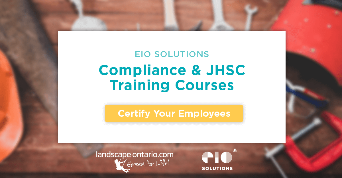 EIO Solutions is offering Landscape Ontario members discounted rates for Compliance Training and Joint Health & Safety Committee (Level 1) Training throughout the summer to ensure your employees are well-versed in on-site safety, and everyone in your organization remains compliant with Ministry of Labour requirements.
