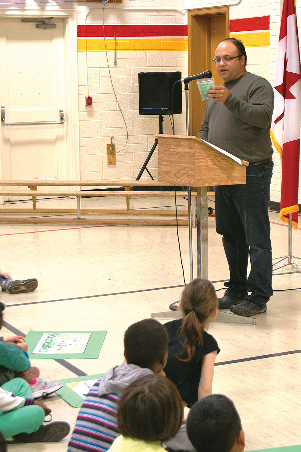 All the students were encouraged to wear green for the special presentation. The auditorium was filled with every shade of green imaginable. Each child was given a packet containing tree seeds, ready for planting.