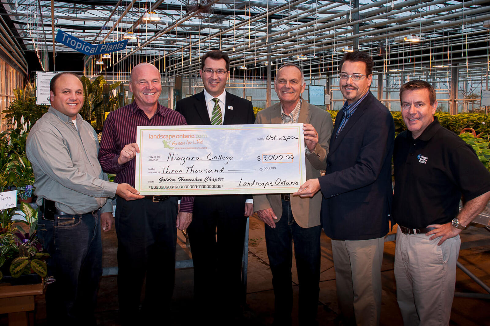 On October 23, representatives of the Golden Horseshoe Chapter presented a cheque for $3,000 to Niagara College to assist students in financial need in the Landscape and Horticultural Departments. Helen Armstrong with Niagara said they had no financial awards for the coming session and were grateful for the contribution. The Chapter also plans to make a financial contribution to Mohawk College.