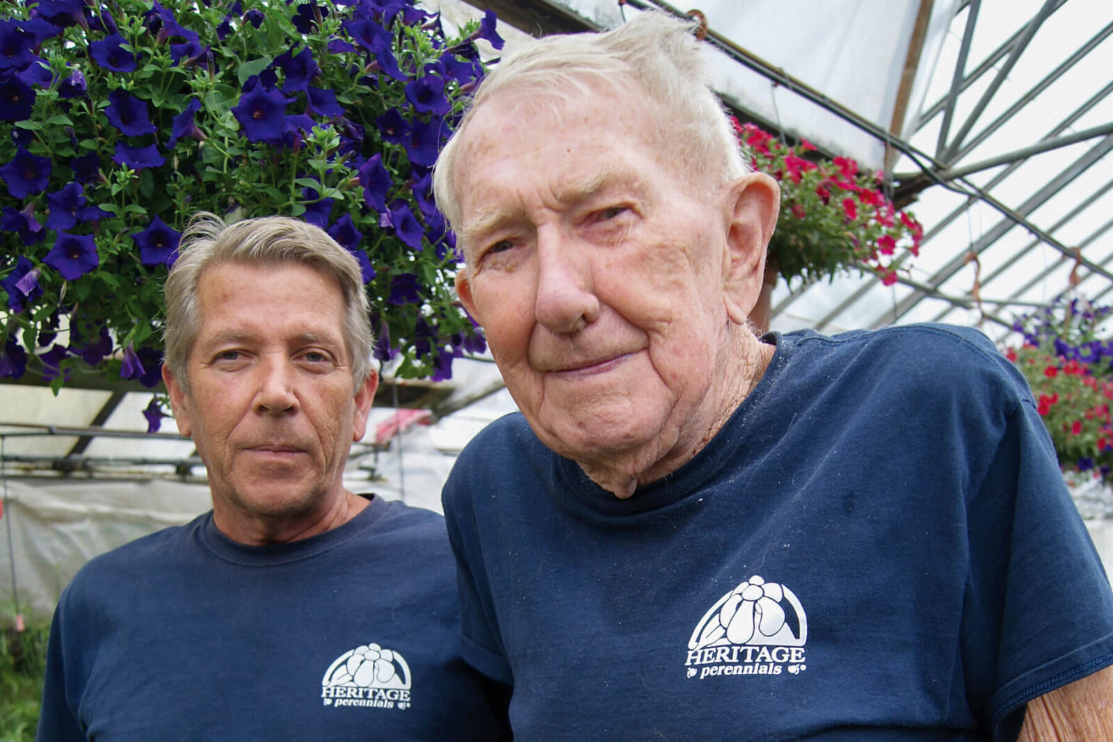 At the age of 89, he still works at the garden centre. “I’m the second lowest paid employee here,” he says with a smile. While pointing to his son Ian, “He’s the lowest-paid.”