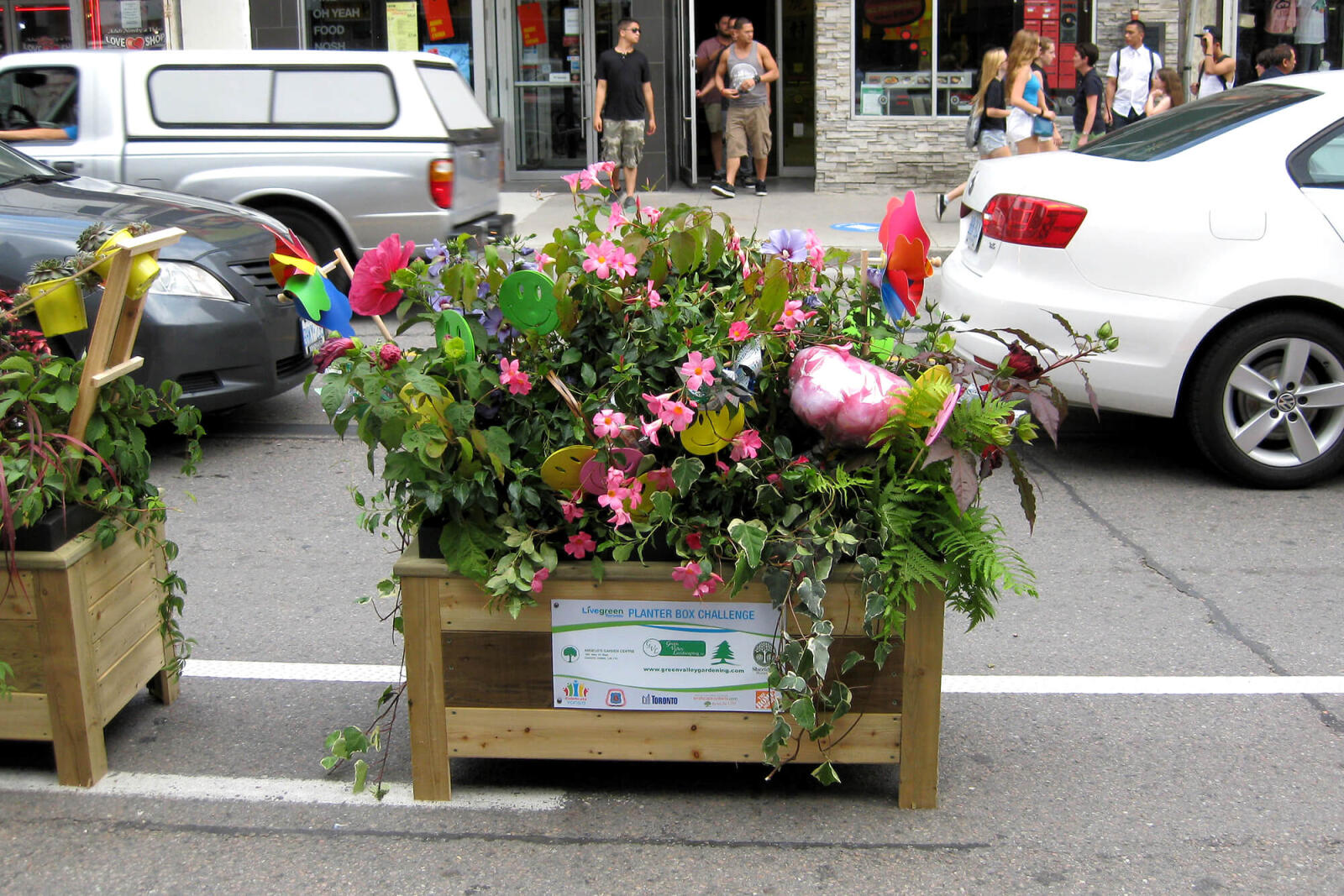 Over 150 planters were created to serve as barriers between pedestrian areas and lanes of traffic from Queen to Gerrard. Over 20 participants responded to the Live Green Planter Box Challenge to landscaping professionals from all over Ontario to build themed floral arrangements.