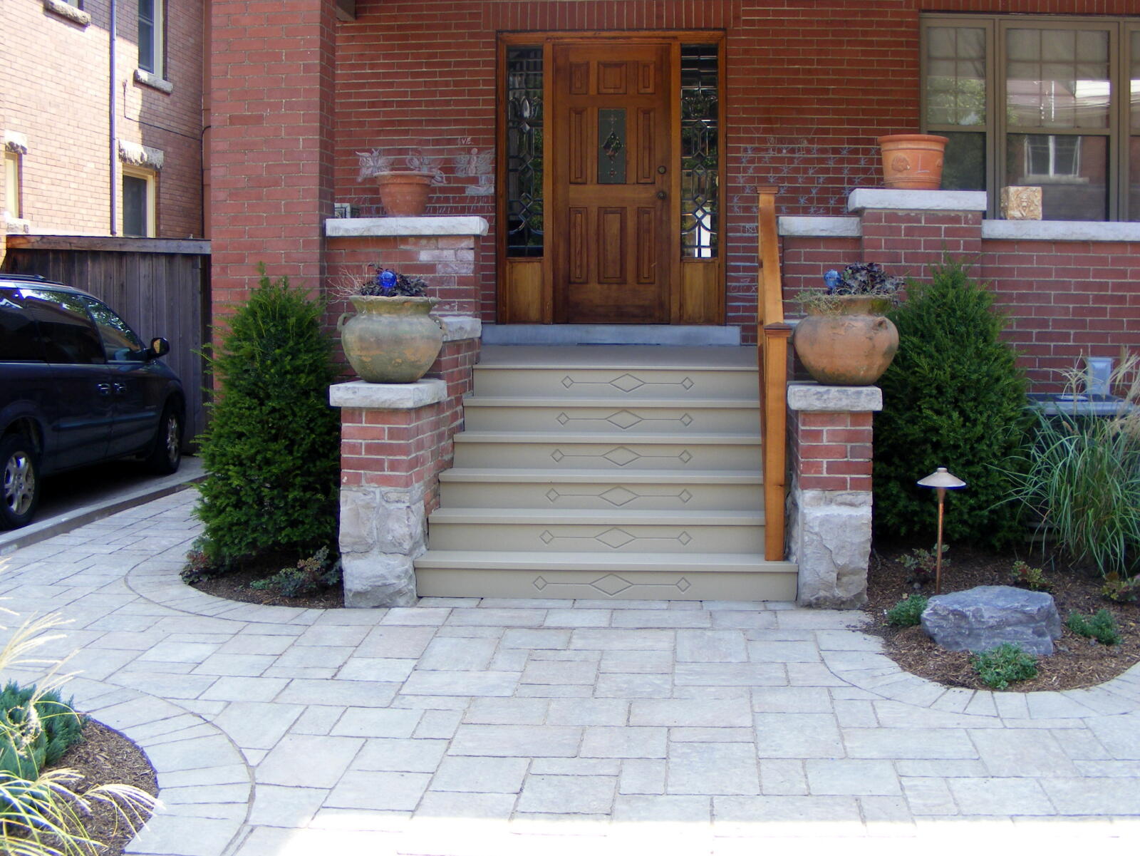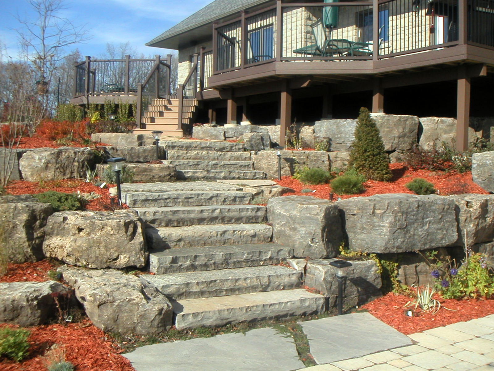 Crimson Leaf also specializes in the planning and building of your landscape - from small renovations to large custom homes. Our work includes retaining walls, concrete and interlocking stone patios, walkways and driveways, vinyl liner pools, sodding, decks, fences and sheds. We also perform excavating and grading services.