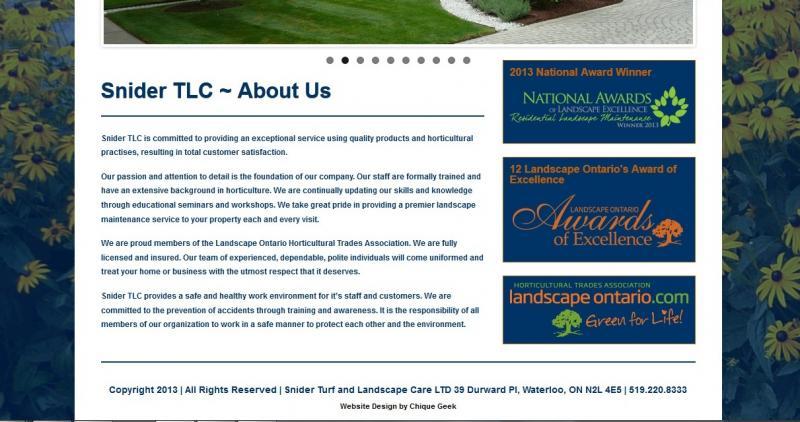 Snider TLC is committed to providing an exceptional service using quality products and horticultural practices, resulting in total customer satisfaction. Our passion and attention to detail is the foundation of our company. Our staff are formally trained and have an extensive background in horticulture. We are continually updating our skills and knowledge through educational seminars and workshops. We take great pride in providing a premier landscape maintenance service to your property each and every visit.