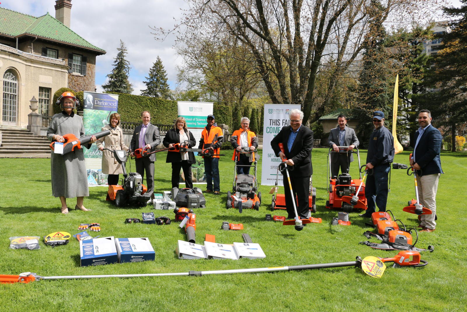 Approximately $28,000 worth of new, Husqvarna maintenance equipment arrived at Parkwood Estates in Oshawa as a result of a partnership between Husqvarna, Durham College, Parkwood Estates, Landscape Ontario, Direct Landscape Supply and Humphries Landscaping. Representatives from the various partners and media were invited to check out the new equipment after its arrival at the estate in Oshawa, Ont. on May 8.