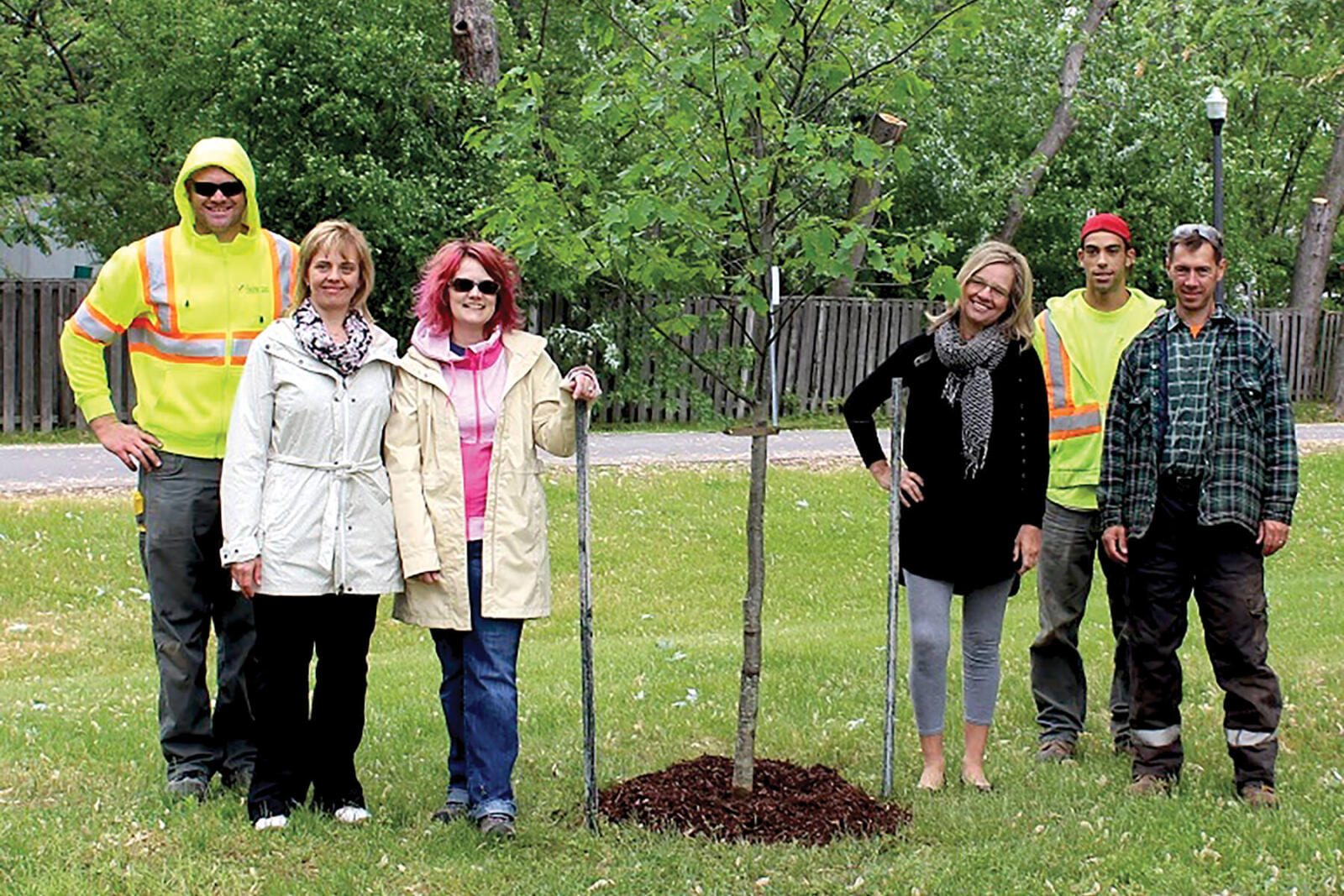 Each year Landscape Ontario donates a tree to be planted to mark the annual meeting of the Ontario Horticultural Society. This year a Quercus rubra (red oak) was planted at Redeemer University College in Ancaster by Gelderman Landscape Services of Waterdown. The convention took place there from July 3-5. A dedication ceremony of the convention tree was held opening day. In photo, from left, James Hutton, Gelderman Landscape Services; Yolanda Bax, Redeemer College Campus Services; Leslie Wright, chair of Memorial Tree Committee; Doreen Gringhuis, Director Campus Services; Dan DaCosta, of Gelderman’s, and Chuck VanderKolk, groundskeeper at Redeemer College. The plaque on the tree reads, “Donated by Landscape Ontario. Planted on the occasion of the 2015 Convention of the Ontario Horticultural Association, hosted by District 6.”