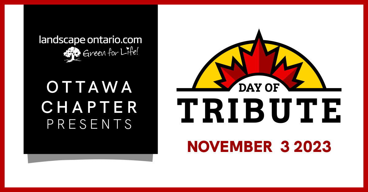 Each year before the November 11 Remembrance Day ceremonies in Ottawa, the Ottawa Day of Tribute event takes place to honor and celebrate Canadian veterans. It was created by Sharon Rouette-Urquhart of Green Unlimited in 2005 to give back to those who have served our country. The event uses the landscape and horticultural industry’s expertise to beautify and maintain properties while honoring those who have served.