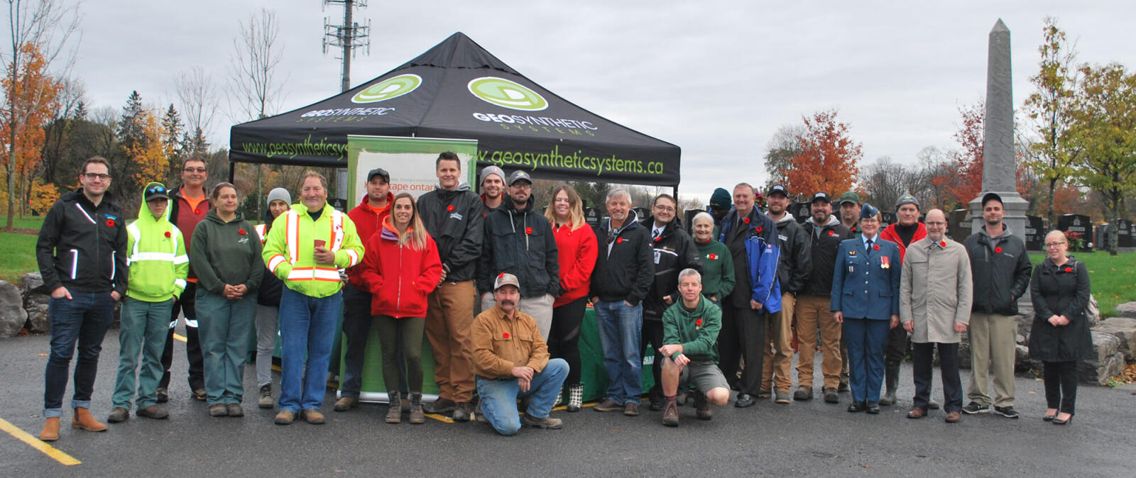 Attendees included the following dignitaries and sponsors: Pete Campbell, Geosythetic Systems, Day of Tribute Chairperson; Warrant Officer Julie Archambault, Department of National Defense; Dominique Boulais, Commonwealth War Graves Commission; Deputy Mayor Bob Monette and his assistant Cynthia Morgan, City of Ottawa; Benoit Bazinet, Beechwood Cemetery; Trevor Davidson, Head Horticulturalist, Beechwood Cemetery; Chris Urquhart, Ottawa Chapter board member; Brett Jeacle, Manderley Turf Products; Kelly Mulrooney, Geosynthetic Systems.