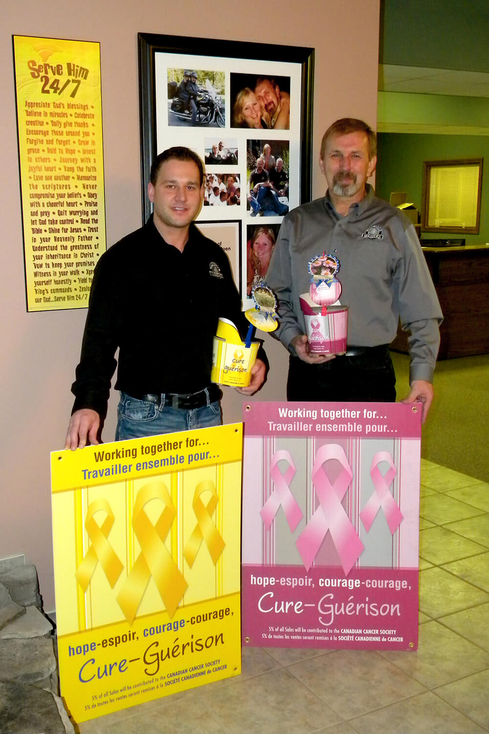 The program offers one-gallon containers of perennials that are packaged in vivid pink and yellow. For every cancer program wrapped perennial that is purchased, five per cent of the sale is donated to the Canadian Cancer Society.