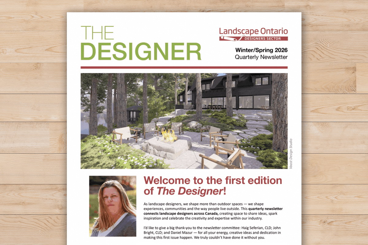 This quarterly, electronic newsletter features a wide range of articles of interest to landscape designers, landscape architects and students across Canada. Meet industry leaders, learn about keys to success, new trends, best practices, industry certification, upcoming events and training opportunities.