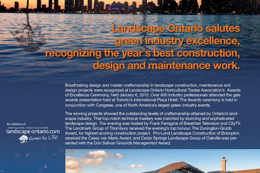 Landscape Ontario salutes green industry excellence, recognizing the year’s best construction, design and maintenance work.