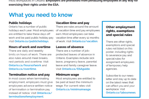 Latest Employment Standards Poster released