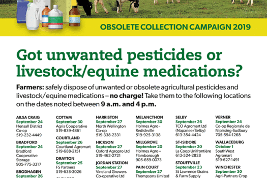 Every three years, CleanFarms Ontario provides free collection of unwanted and obsolete pesticides at several locations across the province. This...